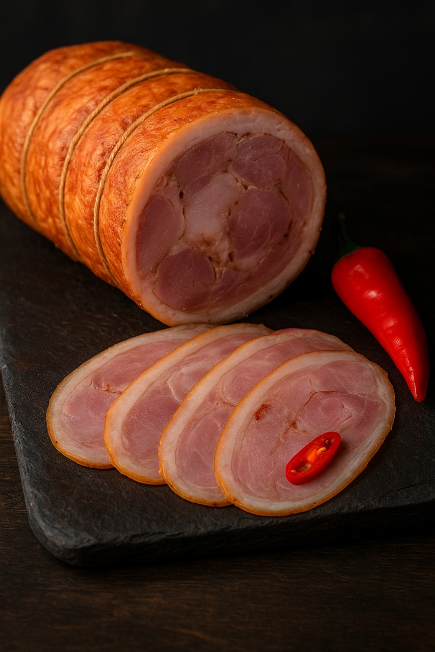 Una preparación tradicional que combina carne jugosa con un delicado proceso de ahumado natural. Ideal para servir frío en reuniones o como plato principal en celebraciones.